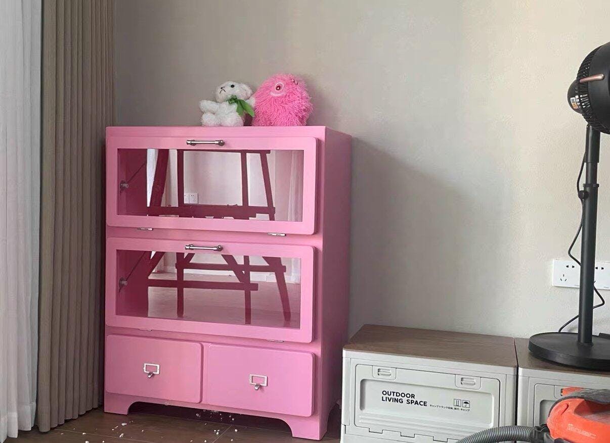 This dopamine-inspired figurine display cabinet is made for people who love cute interiors, collect beautiful things, and want their room to feel playful, styled, and intentional. It’s not just storage — it’s a statement piece that turns everyday organization into aesthetic room decor.